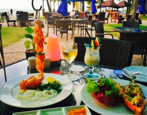 位于酒店沙滩上的餐厅,分为露天座位和室内座位。因为露天座位在海滩上,正对着大海,夕阳西下的时候格外有氛围。餐厅还设置的吧台,晚上在这里喝点小酒也是不错的选择。餐厅供应牛扒、烤海鲜、披萨、汉堡等西餐,非常美味。
