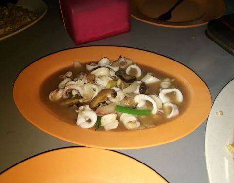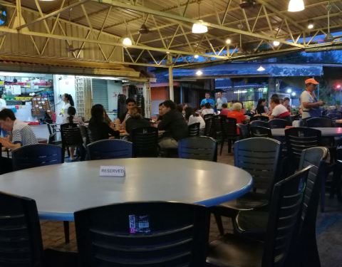 瓜镇的网红大排档,就在酒店门口,据说和对面是一个店出来的不过这家生意就是好,晚上基本都满桌的,老板会讲广东话,很会做生意,也会给客人推荐菜品配菜,吃了几次。 兰卡威虽然是海边但是海鲜基本是冰鲜的,老...瓜镇的网红大排档,就在酒店门口,据说和对面是一个店出来的不过这家生意就是好,晚上基本都满桌的,老板会讲广东话,很会做生意,也会给客人推荐菜品配菜,吃了几次。 兰卡威虽然是海边但是海鲜基本是冰鲜的,老板说活的贵也难卖,海鲜比起仙本那差点,不过价格还算实惠,点了黑胡椒蟹,白灼鱿鱼,炒蚬,这边主食炒粉炒饭味道也不错。