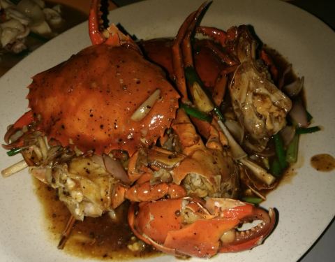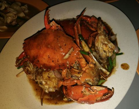 后来在附近的家乡味娘惹餐厅吃到的海鲜炒饭比这家好吃,料多还便宜。点了两个螃蟹,做的黑胡椒味,挺好吃的