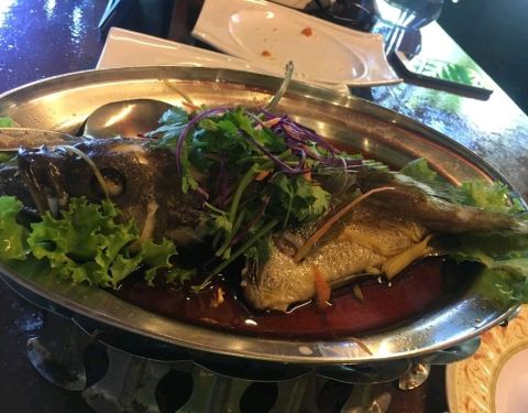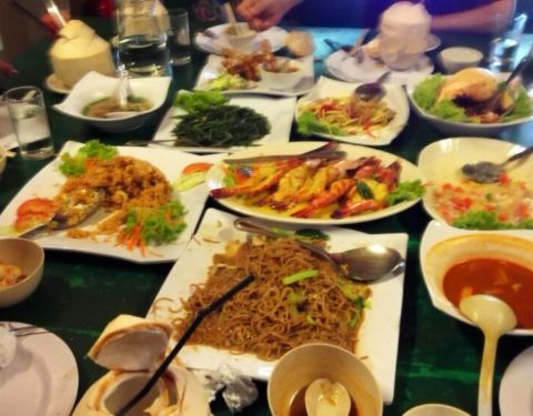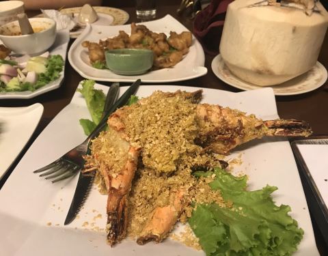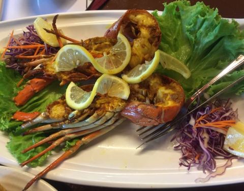 服务很不错,细致周到而且面带笑容,和星级酒店里的服务差不多了,吃的以当地特色海鲜为主,主要还是各种虾,烤的稍微有点焦,其他到也没什么。
