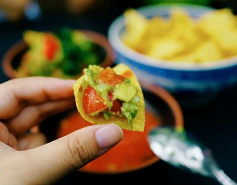 - 玉米片包蔬菜沙拉真的是超级迷你,很佩服厨师的本事啊,可以把这么小这么薄的一个玉米片里塞进去这么多蔬菜