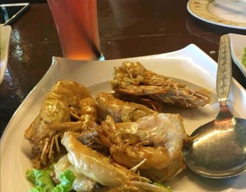 整体菜品口味不错,推荐那个炸鸡,别家没有哦。老虎虾一般,冬阴功汤很正宗,辣就一个字,我还问老板那个佐料哪里买呢。鱼,炒饭,炒粉等都可以吃,上岛几天,海鲜都吃得没有新鲜感了,当然这是自己问题。他们家...整体菜品口味不错,推荐那个炸鸡,别家没有哦。老虎虾一般,冬阴功汤很正宗,辣就一个字,我还问老板那个佐料哪里买呢。鱼,炒饭,炒粉等都可以吃,上岛几天,海鲜都吃得没有新鲜感了,当然这是自己问题。他们家环境是我去过的最好的一家,二楼有空调,终于吃了顿不流汗的饭了。但是,位置不方便,需要租车前往,在去天空之桥的路上