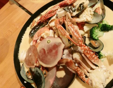 - 环境其实不错的,而且刚好我们是过了饭点还有开的饭店,所以下单之后上菜很快。要了2大盘海鲜还有点了饮品