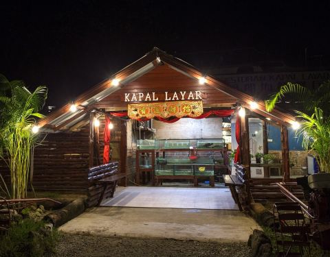 海边的海鲜餐厅,敞开式的环境随时都有海风进入,非常凉爽。餐厅房顶上放着一艘船,非常有创意。可以选择坐...