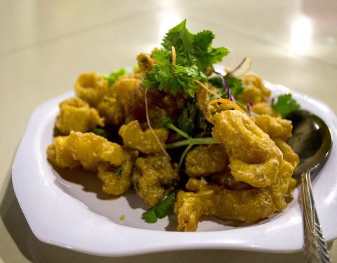 靠在海边的餐厅,可以听着海浪声用餐。蛋黄鱿鱼推荐,外层酥脆,内部的鱿鱼Q弹,唇齿留香