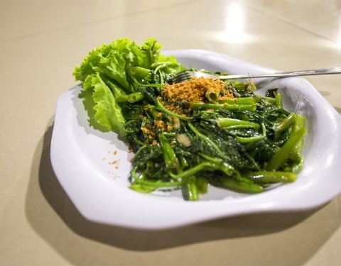 帆船海鲜餐厅。靠在海边的餐厅,可以听着海浪声用餐。蛋黄鱿鱼推荐,外层酥脆,内部的鱿鱼Q弹,唇齿留香。白胡椒蟹是侍者推荐的招牌,可是让人失望,明明水台挑了活蟹,吃到的却是粘壳的死蟹,作为海鲜餐厅,没有新鲜度是让人无法原谅的。沙茶鸡肉略柴,空心菜倒是很合胃口。