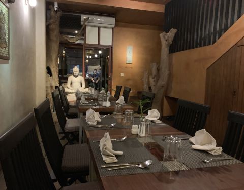 一家有些历史的餐厅,室内感觉有些昏暗,但是里面摆放的都很真实,招待很热情,推荐的食物都比较合理,套餐比较实惠,amok都做得不错,头盘,沙拉,主菜,甜品都让人满意,红咖喱比较特别,吃得比较少,春卷很新鲜,只是水果有点失望,环境安静,食物不错,很适合用餐。