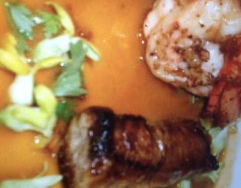 「虾肉色拉」 清新的虾肉色拉搭配柬埔寨风格的酱汁,口感融合的恰到好处。