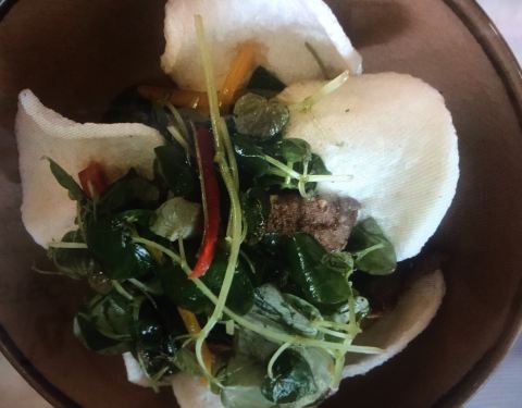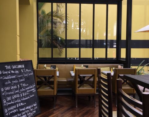 glass house是位于haytt旗下的一家精致饼屋,出品自然没话说,环境美的非常清新干净,在尘土飞扬的街道上,一眼就能发现她的出众,粉黄色的玻璃屋视野开阔,典雅大方。 入座点上一壶薄荷茶,四美金,不同于一些餐厅简单的茶壶套,glass house的配置不输于传统茶馆,茶漏、茶壶、添水壶、品茗杯、还搭配了小饼干,一套上餐特别精美,赏心悦目。 三文鱼沙拉,搭配茄子、节瓜、番茄、甜椒、芦笋等,新鲜选材。帕尼尼丰满,培根、鸡蛋、菠菜和烤过的番茄有层次的排列好,一口入嘴,味蕾丰富。 棕糖是当地特色,选了一款棕糖华夫饼,加入棕糖煎烤过的香蕉与坚果漂亮的摆放在周围,奶香四溢,美味不止,甜而不腻。 最后选了一袋手工烘培的曲奇饼,包装精美送人亦可,三美金六片,加入了南瓜子搭配曲奇,咸甜适中。 能将一杯简单的热拿铁做的如此美,也是glass house讨喜的原因,试想在炎炎夏日,坐于此处,仅点上一份咖啡,也能明媚一整日的好心情。 此外,餐厅的另一特色是可以根据自己的选择来制作特有的三明治,从面包、肉、起司、蔬菜、坚果、点缀,所有的品种都可以随意搭配,特别有趣。