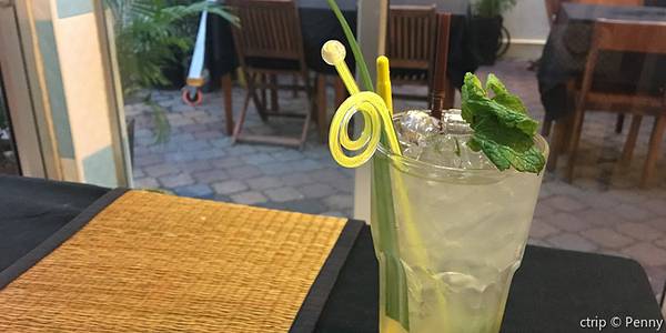 老板是新加坡人,很健谈很友善,会提醒你们注意金边的安全问题。菜品很有创意都是些没吃过的菜式,槟榔叶包牛肉很入味招牌菜了,咖啡猪排脆脆的是特浓的咖啡味哟很特别,芒果鱼酸甜正好芒果是脆的,咖喱鸡也不错...