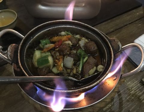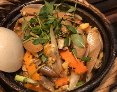 越南酸辣蛤蜊汤 蛤蜊还蛮新鲜的,但口味清淡,蘸着搭配的酱汁吃依然如此。