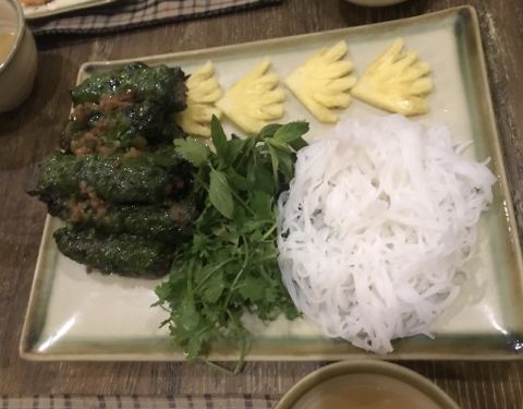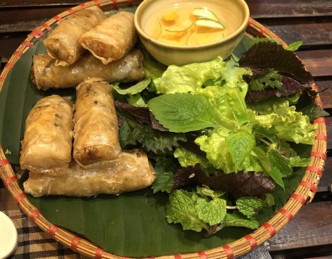 这是一家传统的越南菜餐厅!很有风情!很多外国人慕名而来!氛围很棒! 传统炸春卷,热吃非常美味,皮薄陷多! 蛤蜊酸酸甜甜,辣辣的很开胃,属于开胃菜, 特色烤鱼包着米粉皮吃,会有服务员给你包好,沾着酱汁,...