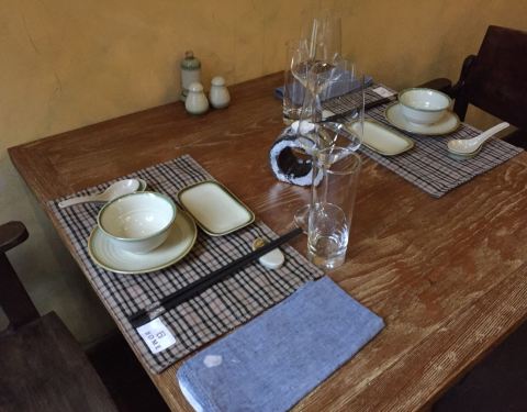 看起来老旧的青色木窗,充满岁月感的原木家具。很适合约会和宴请的环境。