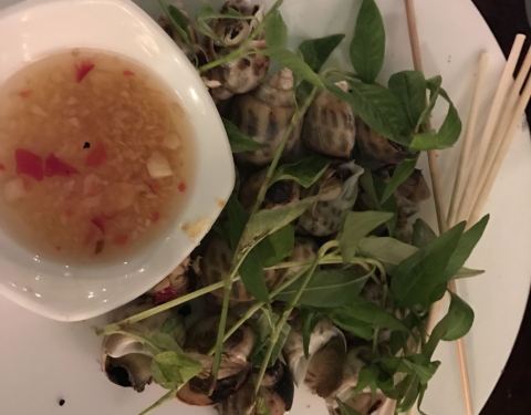 这是一家传统的越南菜餐厅!很有风情!很多外国人慕名而来!氛围很棒! 传统炸春卷,热吃非常美味,皮薄陷多! 蛤蜊酸酸甜甜,辣辣的很开胃,属于开胃菜, 特色烤鱼包着米粉皮吃,会有服务员给你包好,沾着酱汁,有火保持鱼的热度所以吃起来很鲜! 软壳蟹超级推荐很好吃!脆脆的下面配有炸的菜叶!也很脆,很好吃!特别热热的吃! 滴漏咖啡也很纯!毕竟咖啡豆好!