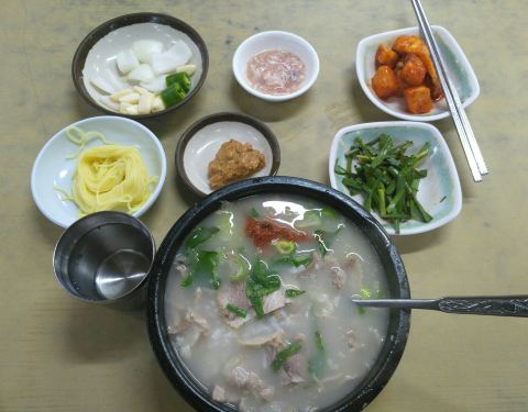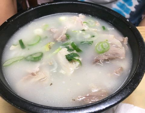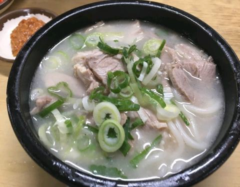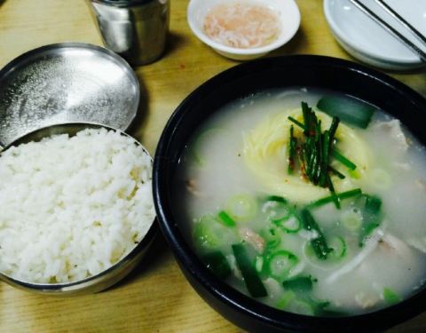 拥有70年悠久历史的传统猪肉汤饭店,给人一种在旅行的时候很想拍照留念的冲动。雪白的骨头汤,没有一点腥味,不添加配菜和佐料的情况下,非常清爽鲜美。首推混合猪肉汤饭,除了有嚼头的猪肉之外还可以尝到特色的米肠,十分满足。