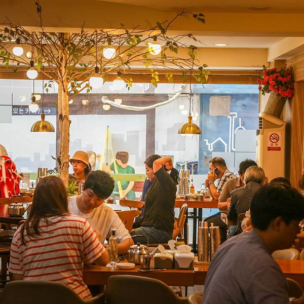 - 这是一家非常受欢迎的店,餐馆的价格非常便宜,味道也很好。餐馆在首尔特别明显,所以我们一下子就找到了