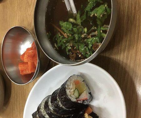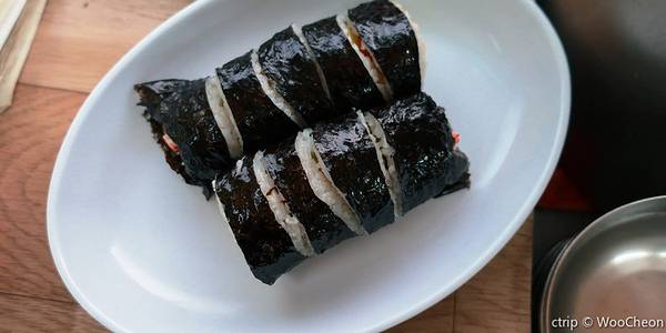 在外面吃多了烤肉冷面,确实很想念一碗热腾腾的汤面,来到这里很多人,汤面很实惠,很大一碗面,喜欢吃辣的,可以添加辣椒面,很辣。紫菜包饭味道很好