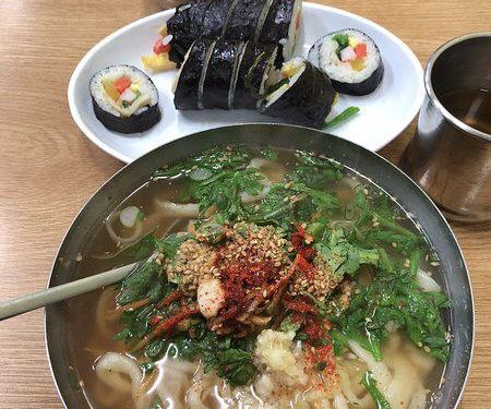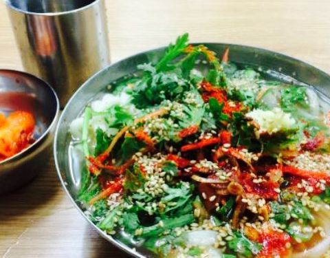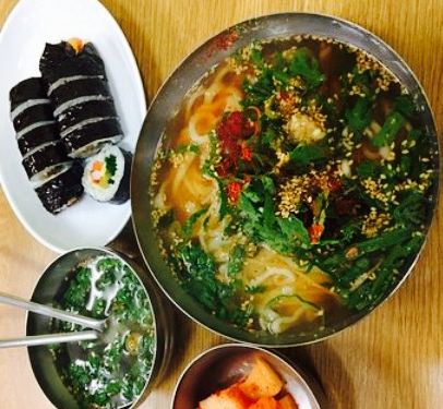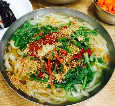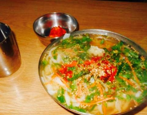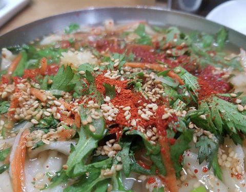 韩式口味的手工刀切面,价格实惠,味道和国内的还是不一样,配菜,酱料以酸辣口味为主! - 食物特别好吃,员工和老板都很友好,价格也特别合理。这里有很多日本人来吃饭。这是一家典型的韩国餐馆