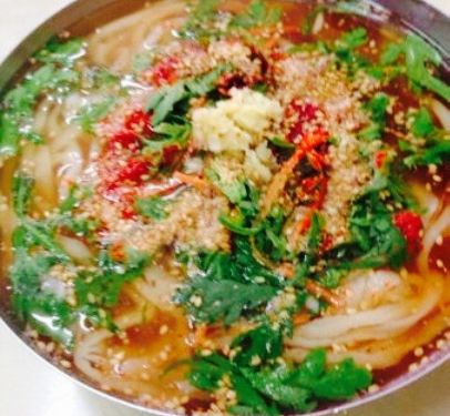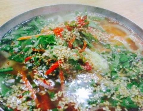 韩式口味的手工刀切面,价格实惠,味道和国内的还是不一样,配菜,酱料以酸辣口味为主!