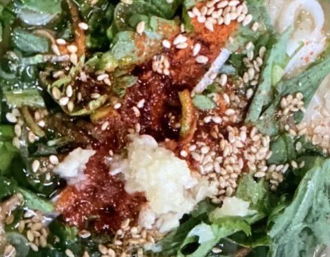周边的环境一般,店外就是左面的工具,环境比较简陋,餐单选择不多,有寿司和三种面食类,老板也非常推荐,我喜欢吃带汤的,面条很有弹性,口感清凉清凉的,里面还放有青瓜,肉末,青菜,随后还撒上芝麻,味道很...周边的环境一般,店外就是左面的工具,环境比较简陋,餐单选择不多,有寿司和三种面食类,老板也非常推荐,我喜欢吃带汤的,面条很有弹性,口感清凉清凉的,里面还放有青瓜,肉末,青菜,随后还撒上芝麻,味道很香,价格也不贵,逛类了没什么食欲,这个正好可以满足。