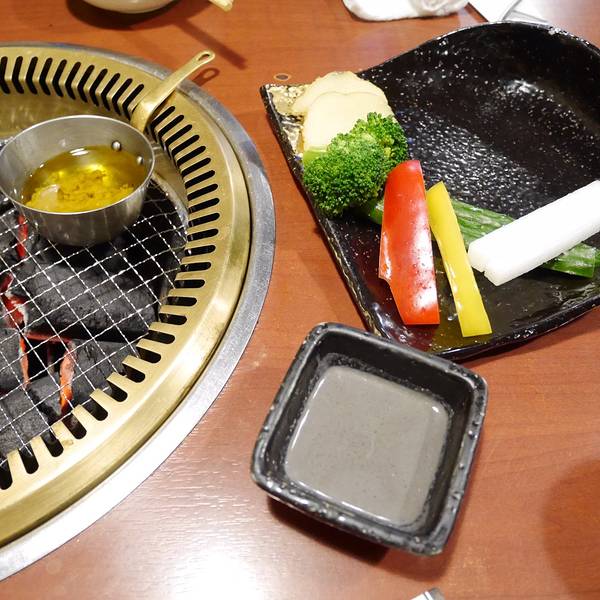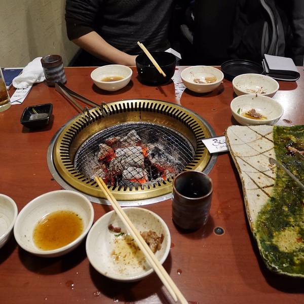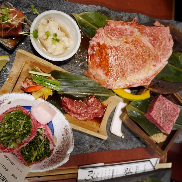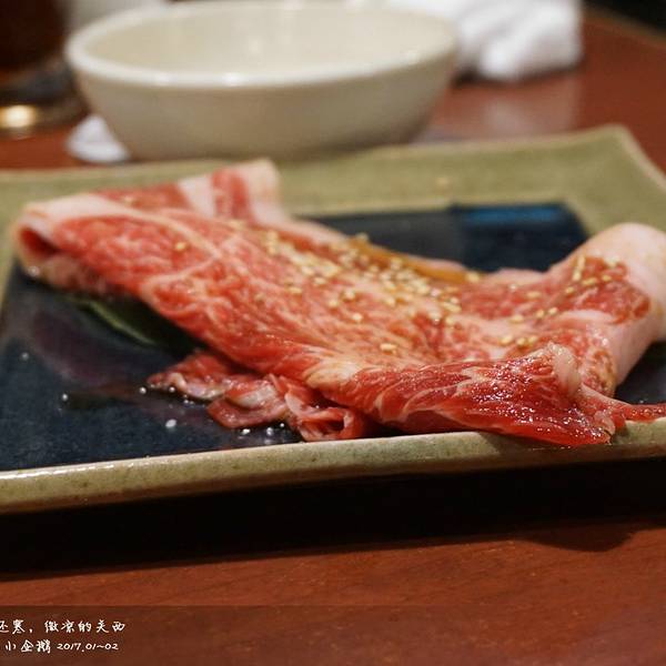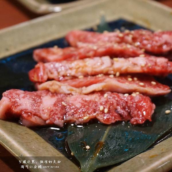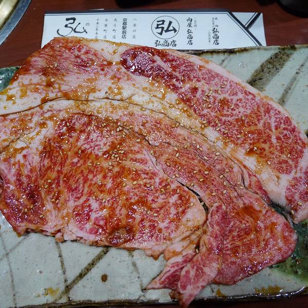 看着时间差不多了,我们就去沿着地图走到弘烤肉去了。一定要在预约时间之前到达,不然被视作自动放弃了。我们到的时候还没到五点,还没开始营业,我们登记了之后在门口等了会。这家是弘烤肉木屋町店,门头很小,要走过一段小巷子才能看到门,真是酒香不怕巷子深啊。。。预定了怕找不到路的小伙伴可以直接大众点评,哈哈,大众点评在国外也是神器呀,好吃的好玩的都能查到的。我们点的是和牛拼盘,厚切牛舌,还有牛心。和牛拼盘真的超好吃,尤其是里面那个超大块的和牛肉。后来我们没吃过瘾,还想单独吃那一块超大块的和牛肉,就和服务员商量能不能单独要一块,后来服务员去问了厨师,说可以,我们就又要了一块,哈哈,全部吃完了,好满足。。。