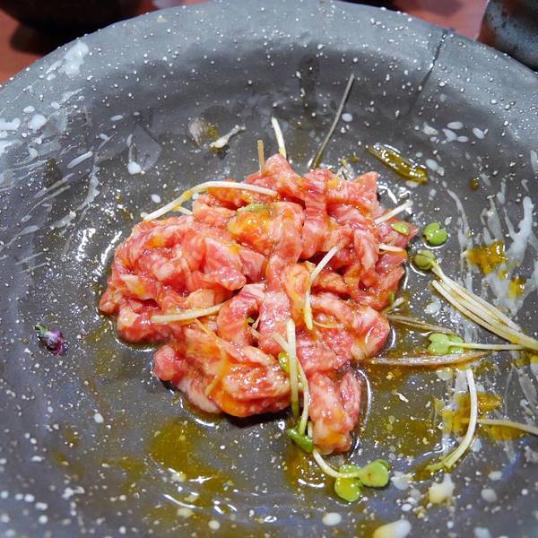 和牛拼盘真的超好吃,尤其是里面那个超大块的和牛肉。这个是特级生拌牛肉,也就是牛肉刺身,超好吃