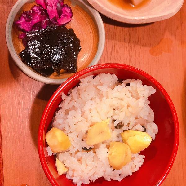 - 感觉如果两个人的话,可以点一个套餐,在单点些别的小吃也就差不多了。放栗子的杂粮米,感觉很健康