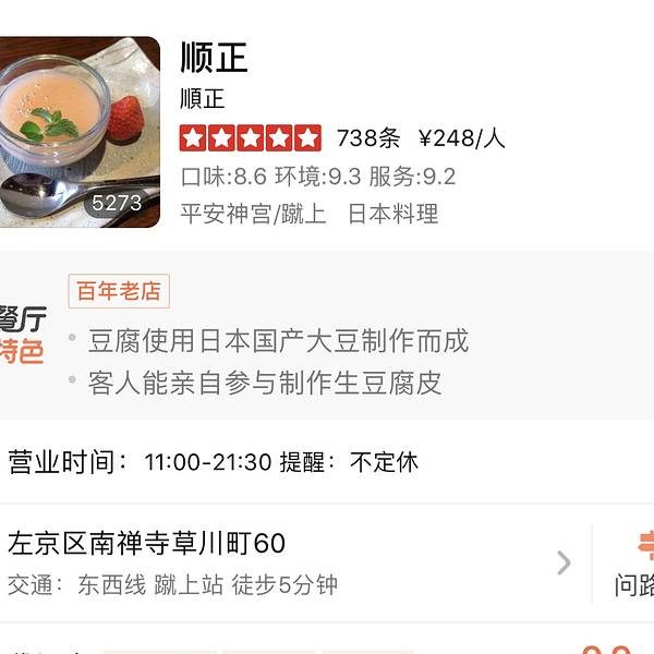顺正是当地吃汤豆腐有名的三大老店之一。开在南禅寺中很风雅,却是可以让人轻松走进去的店,价格也比预想的...