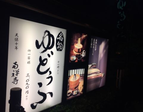 ...大的庭园,夜晚亮着灯很美,内以汤叶料理、汤豆腐著称,主要是各种豆腐食品,不愧为京都第一豆腐料理