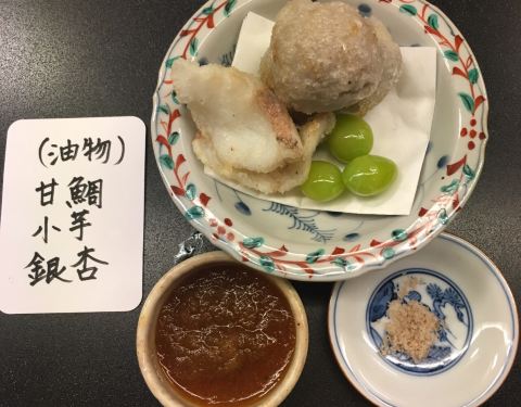 味舌料理!蟹团子汤下肚,暖融融。造和乌贼。飞鱼配特制醋汁,风味独特。“饭蒸”是油炸豆腐寿司,内里的寿司饭有蘑菇碎再调味,整体味道浓郁,大爱。下面是季节拼盘:鸭肉饼,青葱加蚌色拉,柚子干,猫鱼鱼干,...味舌料理!蟹团子汤下肚,暖融融。造和乌贼。飞鱼配特制醋汁,风味独特。“饭蒸”是油炸豆腐寿司,内里的寿司饭有蘑菇碎再调味,整体味道浓郁,大爱。下面是季节拼盘:鸭肉饼,青葱加蚌色拉,柚子干,猫鱼鱼干,裹着腌渍蛋黄的三文鱼,鱼饼蛋糕等。“烧物”是炙烤三文鱼,略老。“冷物”是山菜加白鱼,山菜很脆爽,白鱼可能因为本身很细小,所以口感欠佳又不鲜。“炊合”是無鲷麸,就是那个圆圆的看起来以为是团子但吃起来更像中空的水哒哒的团子的东西。。“饭”是鳗鱼茶泡饭。鳗鱼是腌渍的并非烤制,略咸。吃到这真的已经肚子弹出来了,尝了一下实在不能光盘了。最后的“甘味”是狐狸样子的红豆果子配煎茶,大喜欢。不多啰嗦了,是可以推荐的一家。