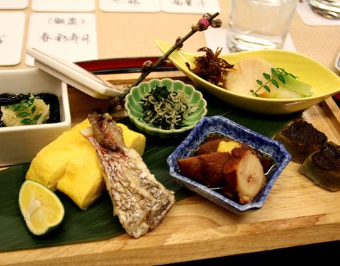 - 餐具和摆盘都很精致,菜品分别是 樱茶 冷酒 蛤 冬菇 菜花 鲷鱼 芋团子 汤叶汁 鲷鱼 乌贼刺...