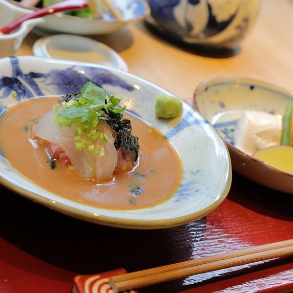 京都岚山一家吃鲷鱼茶泡饭的日本餐厅,名气很大,开店15分钟就可能排长队,所以建议提前预订再前往,鲷鱼是他们的特产,肉质新鲜,配上白米饭,再浇上绿茶,非常美味。