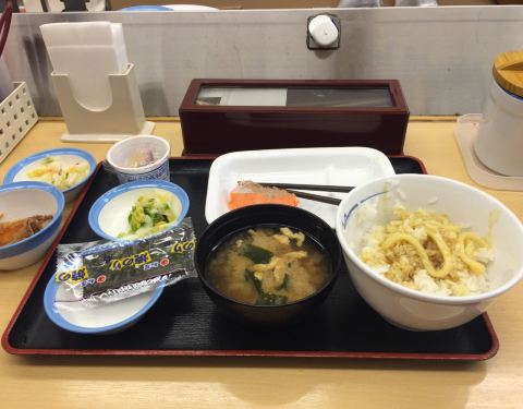松屋是日本一家快餐连锁店,牛肉饭的味道非常好,很多人在这里进餐,桌上还会提供各式各洋的酱料。当然,最棒的就是在松屋店内用餐一率都会附上味增汤,