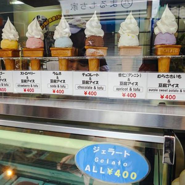 主打豆腐冰淇淋,冰淇淋软软滑滑,有种豆子的香味。从伏见稻荷大社出来往公交站走的路上,途径一家冰淇淋店