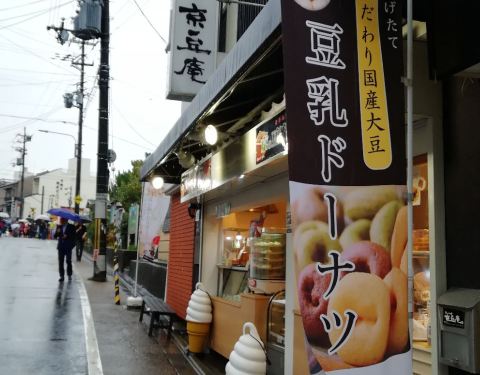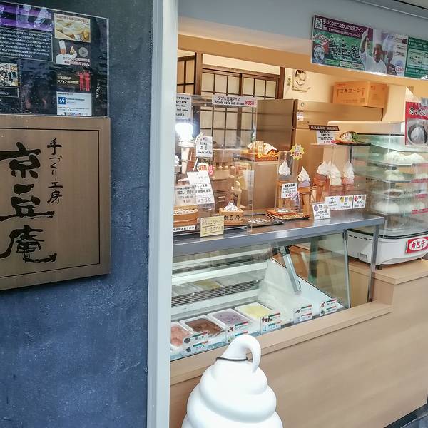 【地址】伏见区深草秡川町16-20(距离伏見稲荷站91m) 【人均价格】 300日元(约18人民币) 【特色美食】豆腐软冰淇淋 , 豆腐抹茶冰淇淋蛋筒 , 豆腐甜甜圈 , 豆乳布丁京豆庵(伏见稻荷店)在去伏见稻荷大社路上必经之路上,远远地就可以看到写着“京豆庵”的广告招牌和冰淇淋雕塑。小小的店面,种类非常丰富,有冰淇淋、甜甜圈、蛋筒、布丁等等。我吃的是稻荷大社限定的华夫薄饼夹豆腐抹茶冰淇淋,京豆庵是一家全国连锁的冰淇淋店,“伏见稻荷限定”的意思是只有在这里才能吃到的哦。比起抹茶部分,豆乳冰淇淋更加好吃一点,虽然二者味道都非常浓稠,但豆乳入口清香,保留了豆的醇厚,又不至粘腻,入喉之后久久回味无穷,让人惊艳!这份双拼华夫饼冰淇淋300日元一份,折合人民币大约18元一份,值得推荐!吃饱喝足,不如就去清水寺附近逛一逛吧!