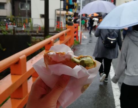 在去伏见稻荷大社路上必经之路上,小小的店面,食物可一点也不马虎,我吃的是稻荷大社限定的华夫薄饼夹豆腐抹茶冰淇淋。 比起抹茶,豆腐冰淇淋更加好吃一点,虽然二者都非常浓稠,但豆乳入口清香,保留了豆的醇厚,又不至粘腻,300日元一份,值得推荐!