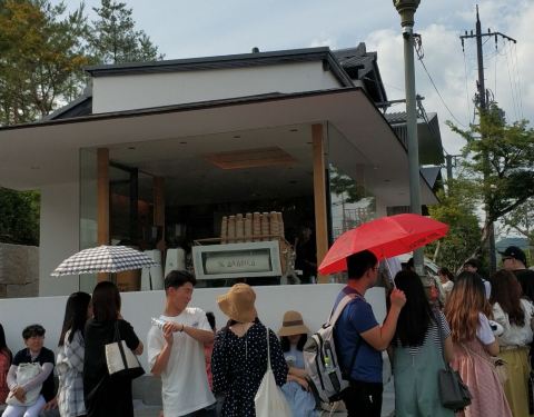 这里京都咖啡的网红店,可以说是去嵯峨野的必打卡之一。也正是因为这样,这里的人实在太多了,要排很长的队。而且还只能买打包的,没有堂食的座位。不过这里的地理位置非常好,就在渡月桥边上,如果能在这里慢慢...