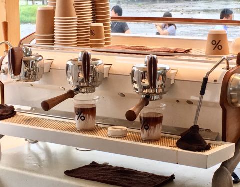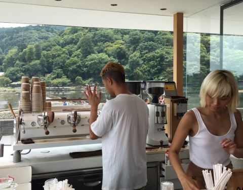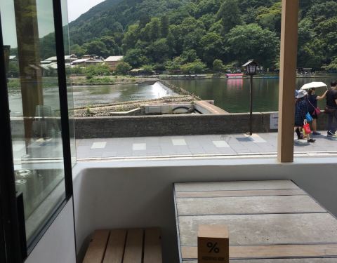 装修简约干净的 % Arabica咖啡店备受年轻人欢迎。京都岚山的分店位于大井河和渡月桥的附近,依山…