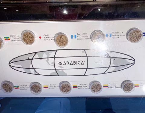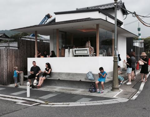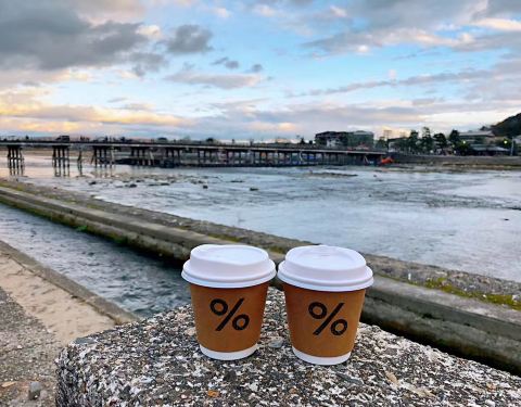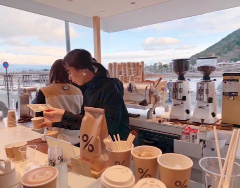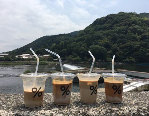 装修简约干净的 % Arabica咖啡店备受年轻人欢迎。京都岚山的分店位于大井河和渡月桥的附近,依山傍水,隔着大玻璃窗就能欣赏优美雅致的风景,不少人都会选择用一杯% Arabica的饮品与窗外的风景来一张合照,是一家值得打卡的咖啡店。