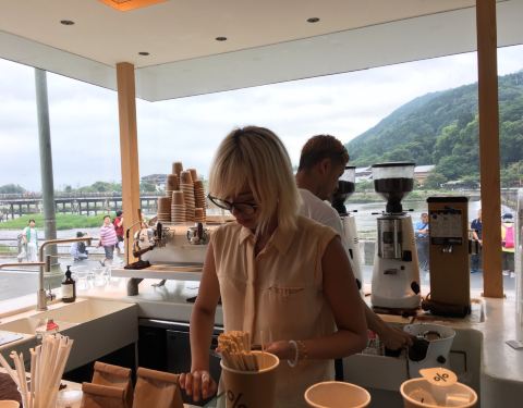 这里京都咖啡的网红店,可以说是去嵯峨野的必打卡之一。也正是因为这样,这里的人实在太多了,要排很长的队。而且还只能买打包的,没有堂食的座位。不过这里的地理位置非常好,就在渡月桥边上,如果能在这里慢慢...这里京都咖啡的网红店,可以说是去嵯峨野的必打卡之一。也正是因为这样,这里的人实在太多了,要排很长的队。而且还只能买打包的,没有堂食的座位。不过这里的地理位置非常好,就在渡月桥边上,如果能在这里慢慢坐着喝杯咖啡,真的是一种完美的享受。
