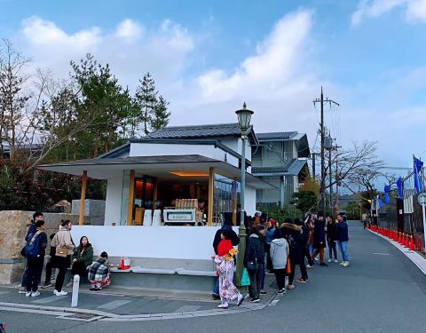 这里京都咖啡的网红店,可以说是去嵯峨野的必打卡之一。也正是因为这样,这里的人实在太多了,要排很长的队。而且还只能买打包的,没有堂食的座位。不过这里的地理位置非常好,就在渡月桥边上,如果能在这里慢慢坐着喝杯咖啡,真的是一种完美的享受。