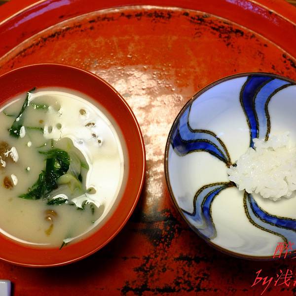 古色古香,茶韵四散~原来是精心调制的饭食一点~这里不仅是食材鲜汤以外,两人份的碗盖也有故事~~实际配汤会有点点白饭