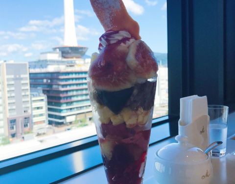 到达京都的第一餐,选择午饭时间来吃甜品,顺利躲过高峰不用排队!听说是京都本地人十分喜爱的甜品店,就在伊势丹6楼!白色简约的环境,窗口位置可以看到京都塔,天气好心情更加好! 点了一份蜜瓜芭菲配蒙布朗,...