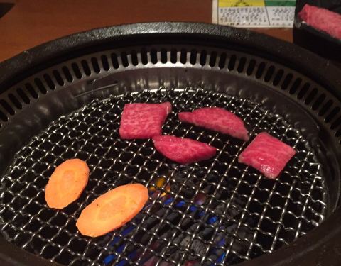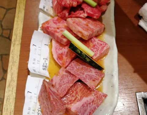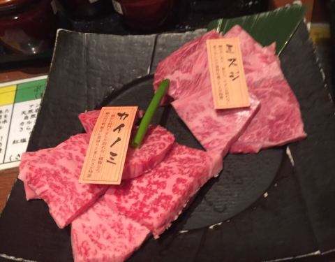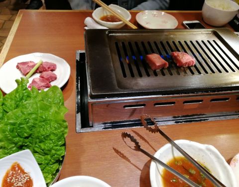 隔了很久吃的了,翻了点图片出来,不是很全,第一次去日本,以防万一去之前用app预约的位置,都是单个的小包间,由于我是个老婆两个人给了一个对面是墙的位置,刚进去的时候有点愁,第一次见这种位置。店内的装修很有感觉,图中可以看,拖鞋是必须的。素菜点了个拼盘没什么特别的(肉食动物)点肉一定要点稀有部位(强烈推荐)真的是入口即化,烤到变色翻一面变色就可以吃了,普通部位不是不好吃,毕竟感觉和国内一般烤肉店没啥区别。还是很推荐的,服务不用说的ok