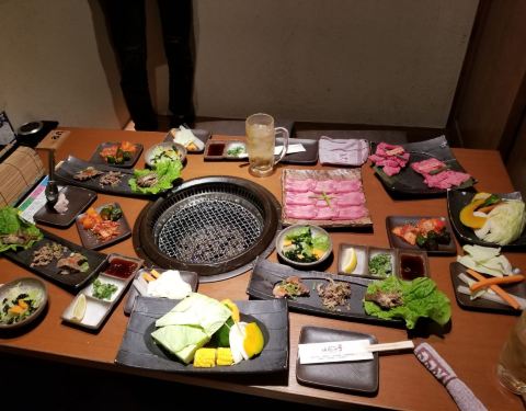 隔了很久吃的了,翻了点图片出来,不是很全,第一次去日本,以防万一去之前用app预约的位置,都是单个的小包间,由于我是个老婆两个人给了一个对面是墙的位置,刚进去的时候有点愁,第一次见这种位置。店内的装修...隔了很久吃的了,翻了点图片出来,不是很全,第一次去日本,以防万一去之前用app预约的位置,都是单个的小包间,由于我是个老婆两个人给了一个对面是墙的位置,刚进去的时候有点愁,第一次见这种位置。店内的装修很有感觉,图中可以看,拖鞋是必须的。素菜点了个拼盘没什么特别的(肉食动物)点肉一定要点稀有部位(强烈推荐)真的是入口即化,烤到变色翻一面变色就可以吃了,普通部位不是不好吃,毕竟感觉和国内一般烤肉店没啥区别。还是很推荐的,服务不用说的ok