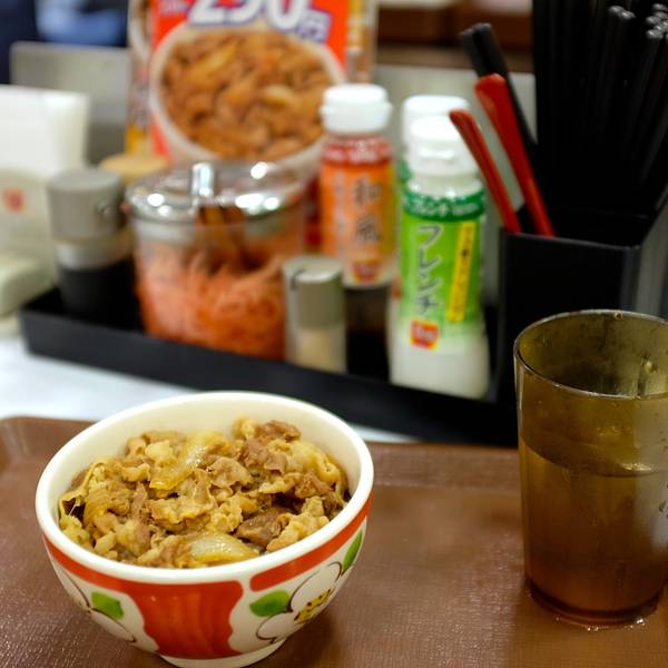 个人还是喜欢这家,类似于麦当劳快餐,分店很多,快速营养。主要经营牛肉饭,竞争对手是吉野家和松屋