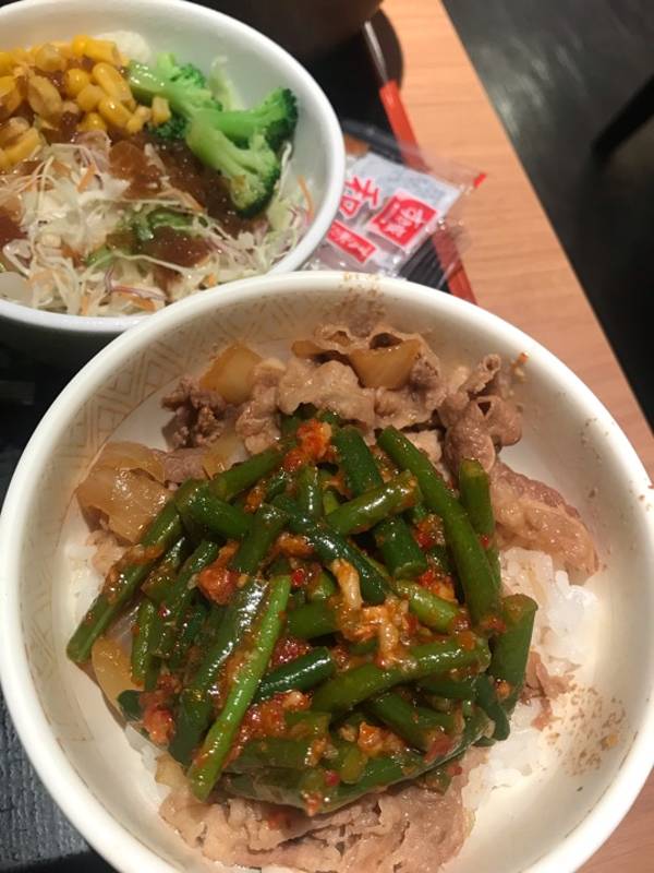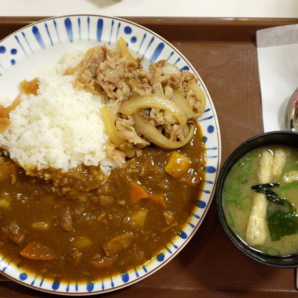 太饿了,这是在日本吃的最满足的一餐食其家,咖喱牛肉和牛丼,还有味增汤,好好吃,完美!