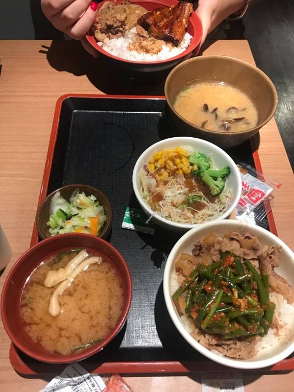 食其家真是日本旅游必备的快捷食物,跟日本不菲的物价相比,食其家的价格很实惠,和牛和鳗鱼双拼的盖饭的套餐也才890日元,真的特别划算,而且最重要的是,米饭真的好好吃,牛肉也味道很香,真的是在日本收获的最...
