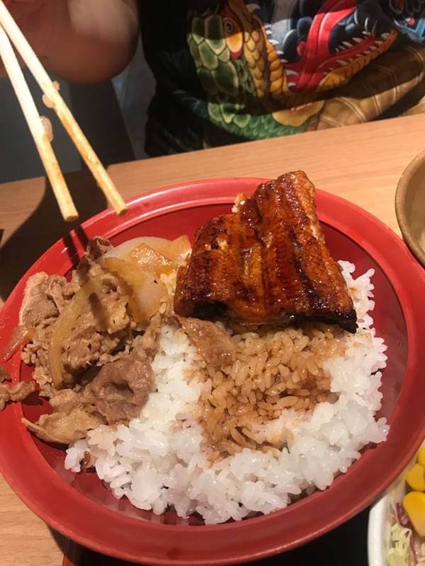 食其家真是日本旅游必备的快捷食物,跟日本不菲的物价相比,食其家的价格很实惠,和牛和鳗鱼双拼的盖...