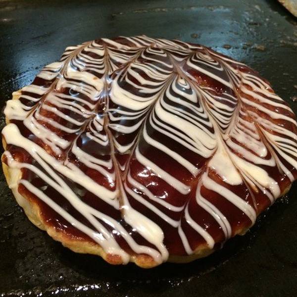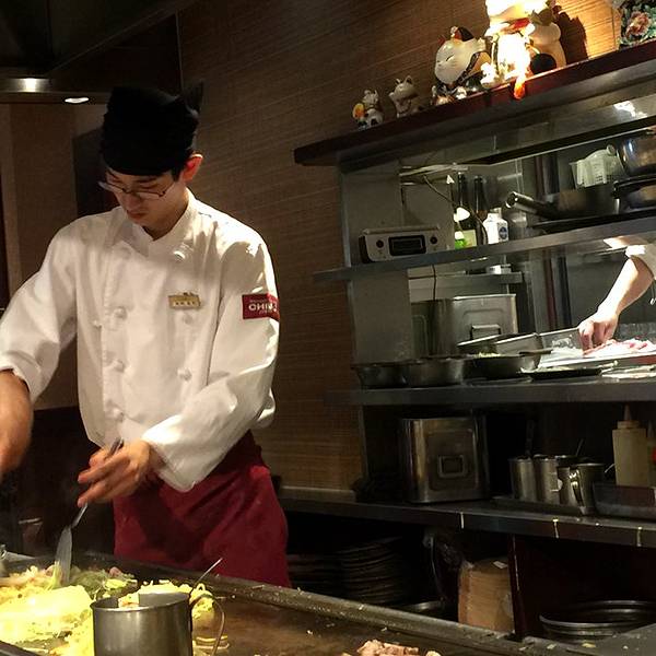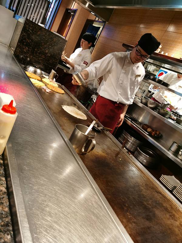 今晚宵夜选了大阪烧,著名的千房店菜单就坐在师傅前面,看着他为食客准备美食